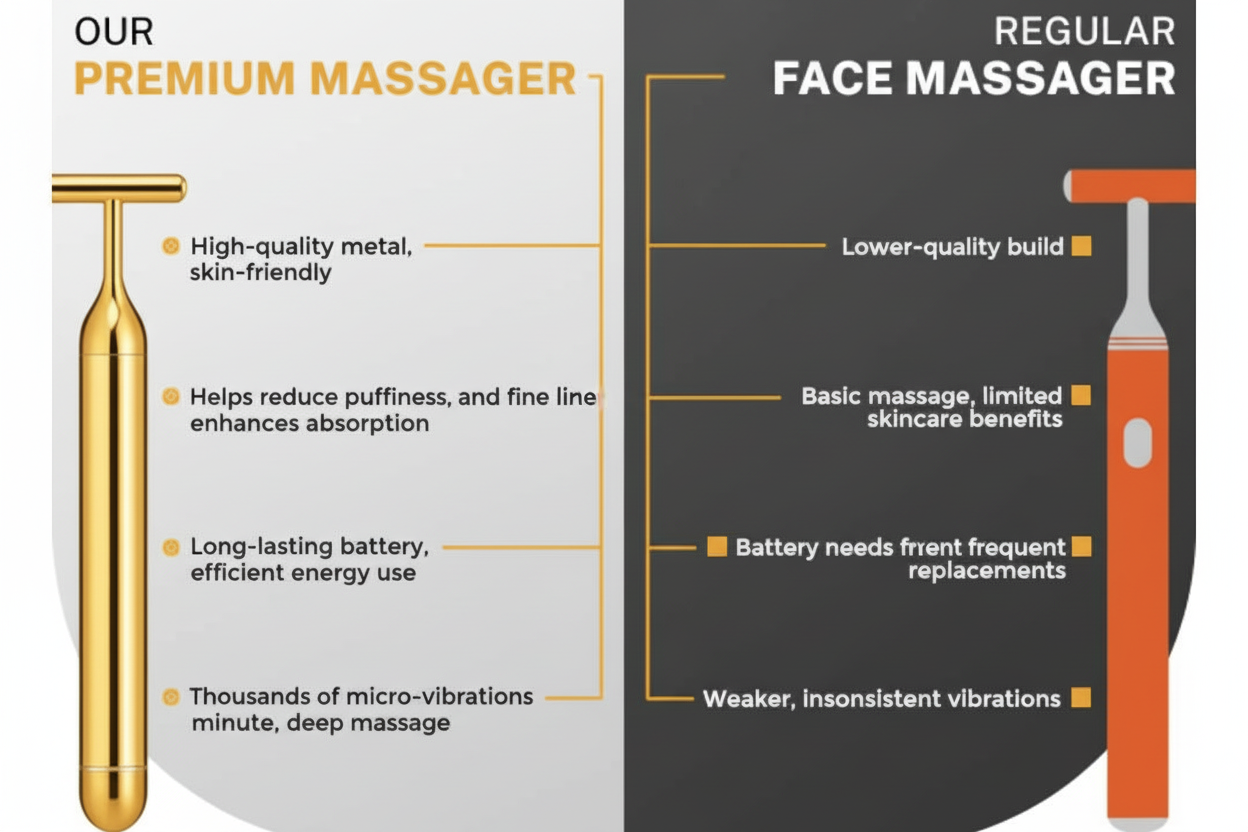 Made with high-quality metal and powered by thousands of micro-vibrations per minute, our massager delivers deeper relaxation, better absorption and long-lasting performance — far superior to regular face tools.