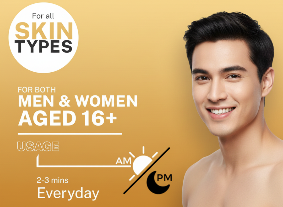 Safe, gentle & effective for men and women aged 16Plus, Just 2–3 minutes daily — morning or night — for a fresher, smoother and naturally glowing look.!